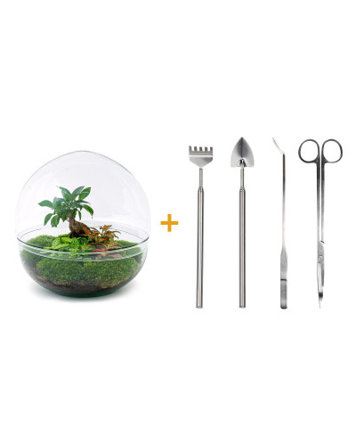 Mit einem Do-It-Yourself-Pflanzterrarium erhalten Sie ein autarkes Biotop, an dem Sie lange Freude haben werden. Nachdem Sie oder die Person, der Sie dieses Terrarium schenken werden, Ihr eigenes Mini-Ökosystem mit dem mitgelieferten Fünf-Schritte-Plan zusammengestellt haben, wird das Wasser durch Verdunstung durch die Pflanzen und Moose recycelt.